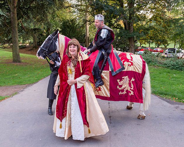This Medieval Themed wedding anniversary celebration took place at Caldicot Castle which is mid way between Chepstow and Newport. The happy couple and guests dressed in medieval costumes, the groom was riding a horse and his bride ‘Guinevere’ accompanied him. Medieval events such as archery etc were re-enacted and the meal was served in the banqueting hall in a manner reminiscent of the medieval era.